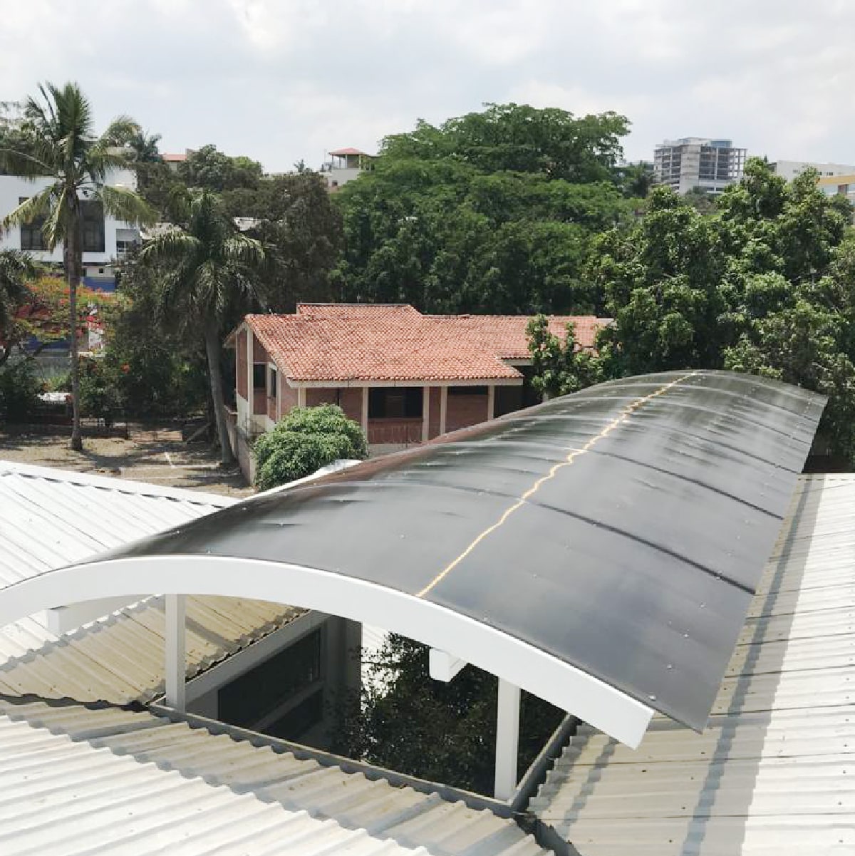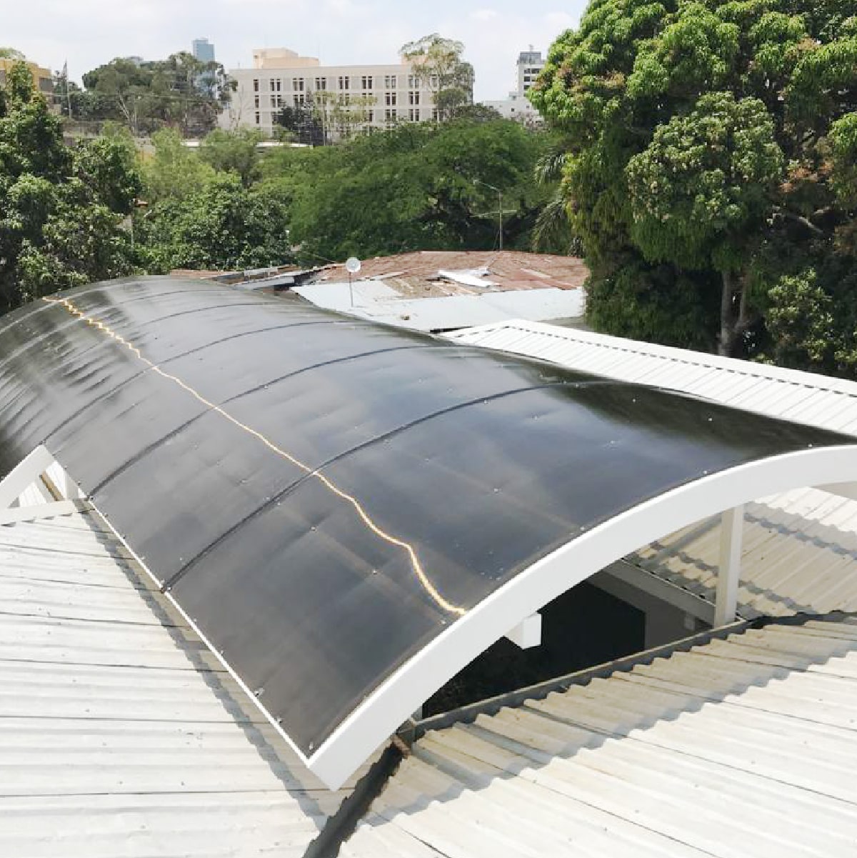 En este proyecto se realizó el diseño arquitectónico en la remodelación del exterior del edificio Reforma 2501, ubicado en Paseo La Reforma, Calle Principal, Tegucigalpa. Implementando un techo curvo con materiales de acero galvanizado pre pintado, grado estructural, que lo convierte en un ambiente amigable con el medioambiente duradero.